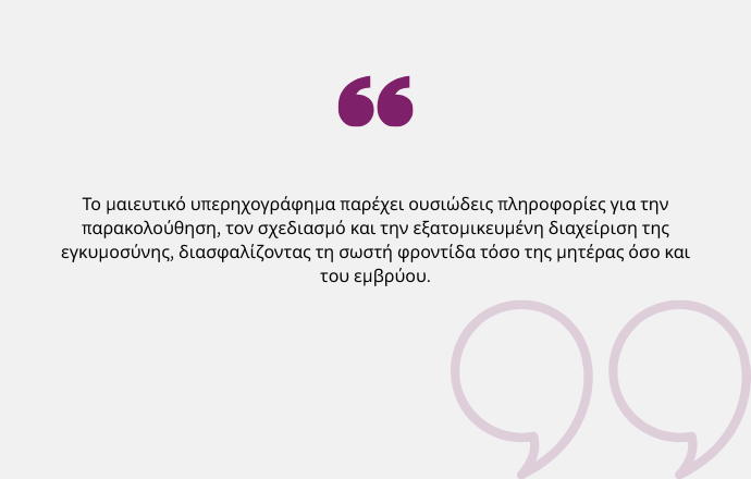 Πρόκειται για μη επεμβατική, ασφαλή και ανώδυνη μέθοδο, απαραίτητη στη σύγχρονη προγεννητική παρακολούθηση. Ειδικότερα, το μαιευτικό υπερηχογράφημα συμβάλλει στην έγκαιρη ανίχνευση ανατομικών ή λειτουργικών ανωμαλιών και στη συνολική αξιολόγηση της πορείας της κύησης.